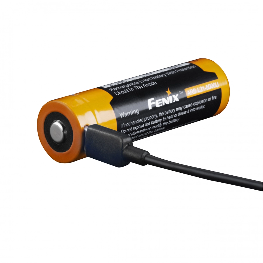 Fenix ARB-L21-5000U to wysokiej jakości akumulator litowo-jonowy typu 21700 o imponującej pojemności 5000 mAh wyposażony w innowacyjny system ładowania za pomocą portu USB-C.