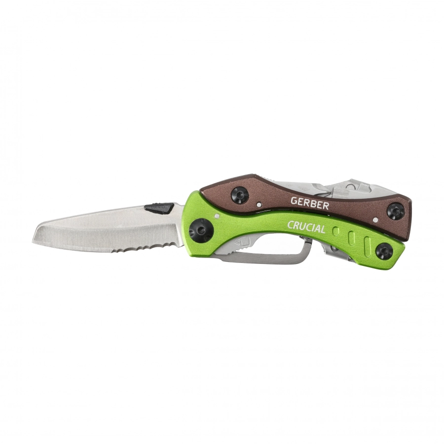 Gerber Crucial zielony to kieszonkowy multitool wyposażony w 8 przydatnych narzędzi oraz praktyczny karabińczyk ułatwiający przenoszenie.