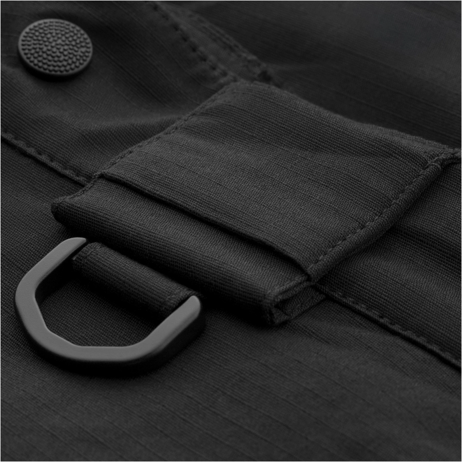 W newralgicznych miejscach spodni zastosowano wzmocnienia z cordury, dzięki czemu spodnie nie ulegają wytarciu podczas codziennego użytkowania i wzmożonej aktywności fizycznej. W efekcie spodnie mają wzmacniane kolana, siedzenie, krawędzie bocznych kieszeni, oraz tylne części nogawek. W pasie zapinanym na 2 napy zastosowano elastyczną regulację oraz szlufki o szerokości aż 55 mm, w których bez problemu zmieścimy każdy pas taktyczny lub edc. Rozporek zapinany jest za pomocą markowego zamka YKK, które od lat słyną z niezawodności i trwałości. Na pasie spodni znajduję się dwa półkola d-ring służące do mocowania smyczy, karabińczyka etc. Dzięki zastosowaniu velcro i elastycznej taśmy dolną część nogawek można łatwo dopasować.