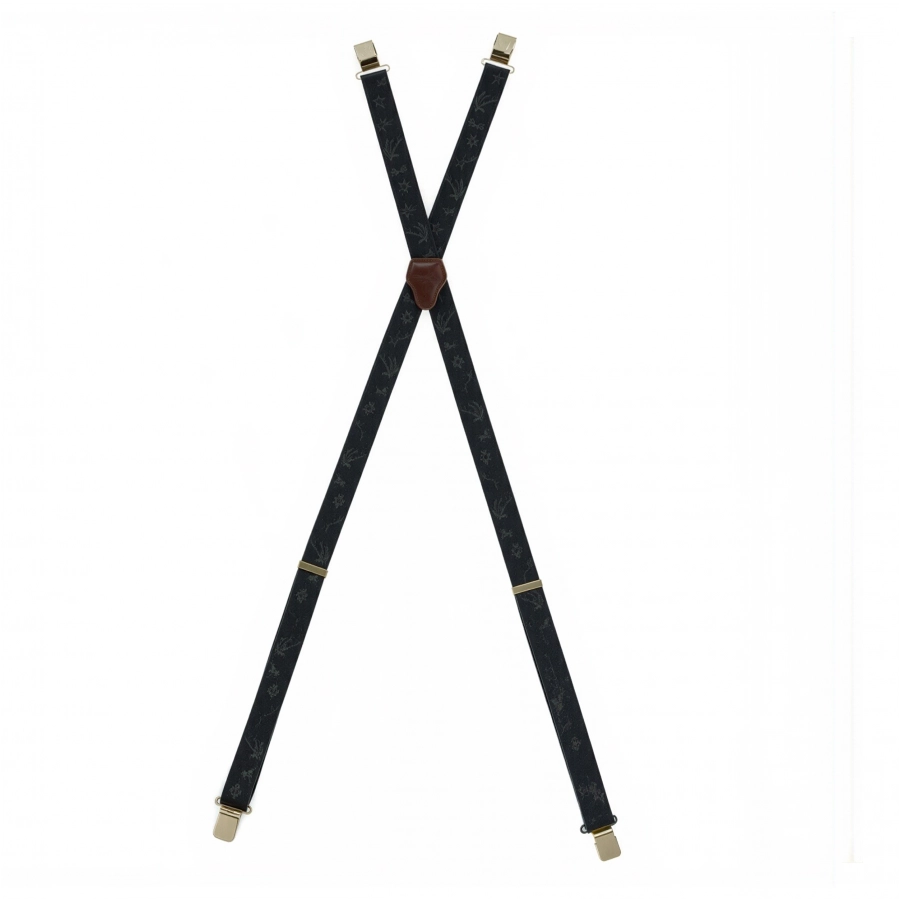 Szelki męskie z klipsami Pinewood Braces w kolorze ciemnozielonym to elastyczne i szerokie szelki. Na szelkach znajdują się motywy, a na plecach zastosowano skórzany łącznik. Mocne metalowe klipsy świetnie nadadzą się do podtrzymania nie tylko ciężkich spodni, ale i klasycznych spodni noszonych na co dzień.