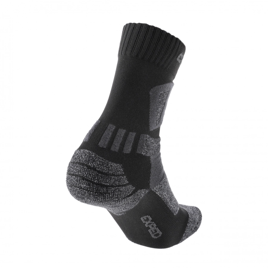 Skarpety wykonane są z poliestru DryTex Comfort, charakteryzującego się trwałością i wytrzymałością na uszkodzenia mechaniczne. Tkanina posiada również właściwości hydrofobowe, przez co bardzo dobrze odprowadza wilgoć od skóry. W mieszance materiału znajduje się także mikrowłókno polipropylenowe Siltex AG+, wzbogacone jonami srebra. Dzięki temu niwelowane są bakterie i drobnoustroje odpowiedzialne za powstawanie nieprzyjemnego zapachu.