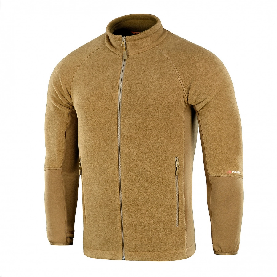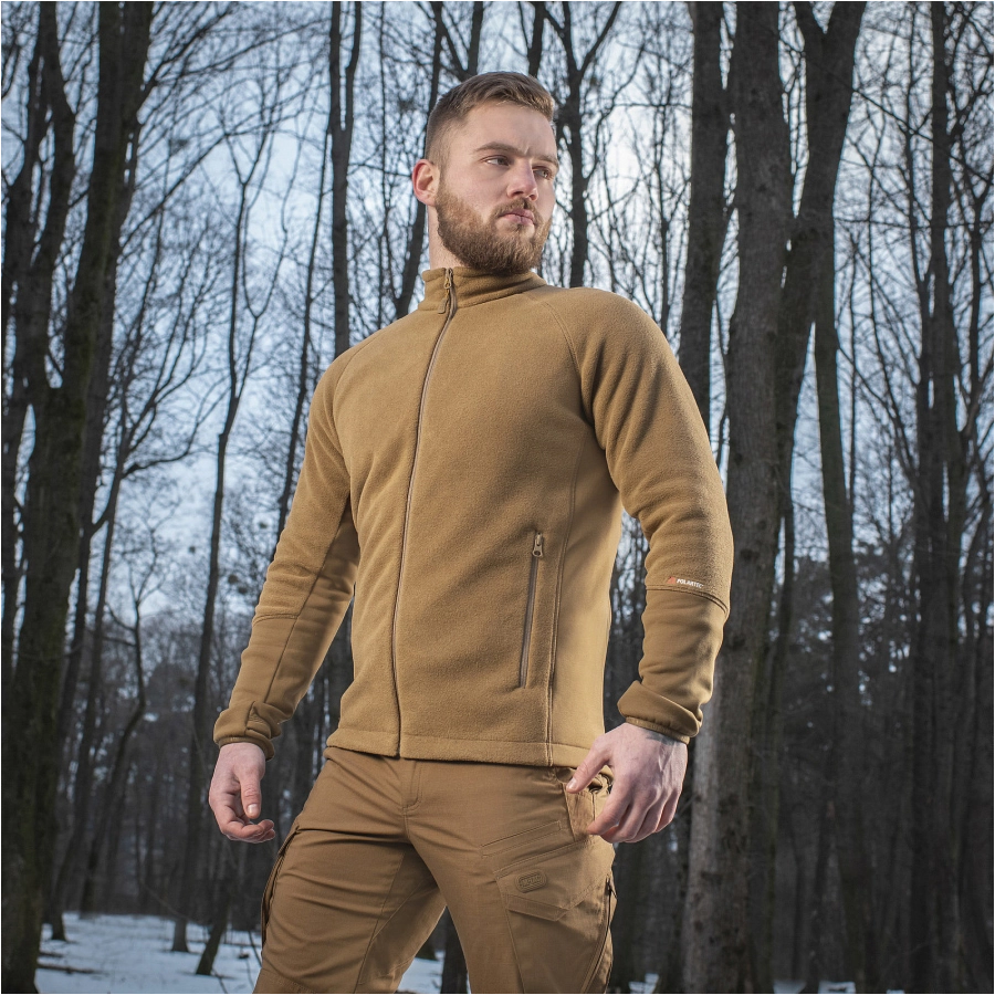 Męska bluza polarowa M-TAC została wykonana z oryginalnej tkaniny Polartec, gwarantującej doskonałe parametry termiczne. Cienka struktura gwarantuje niską wagę oraz doskonałą współpracę z kurtkami softshellowymi. Model jest w kolorze Coyote.