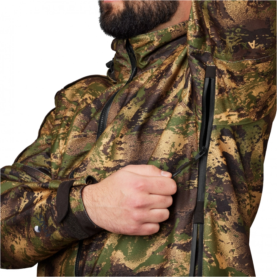 Kurtka ma cyfrowy wzór leśny AXIS MSP, który skutecznie maskuje sylwetkę w różnorodnym otoczeniu i o różnych porach roku.