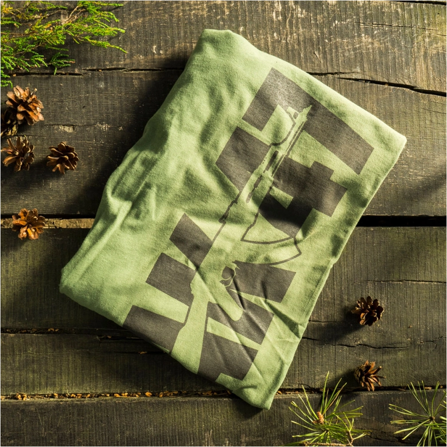 Koszulka TigerWood AK47 wykonana jest najwyższej jakości bawełny. Dzięki temu materiał jest przyjemny w dotyku i przepuszczalny dla powietrza, a koszulka komfortowo dopasowuje się do sylwetki i nie powoduje podrażnień. Bawełna jest naturalną, biodegradowalną tkaniną, dlatego jest przyjazna dla środowiska. Na froncie koszulki, w prawej części zlokalizowany jest czarny nadruk AK-47 o wysokiej jakości wykonania, która zadowoli nawet najbardziej wymagających klientów. Koszulka dedykowana jest pasjonatom, którzy kultowy karabin AK 47 chcą mieć zawsze ze sobą.