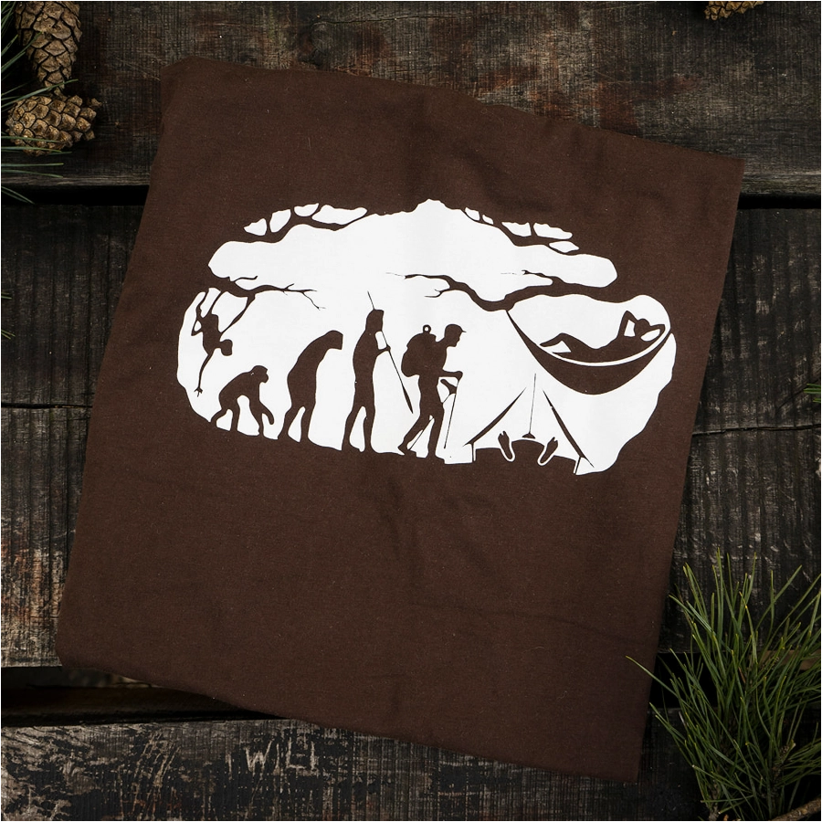 Koszulka Bushcraft Evolution to spojrzenie na ewolucję człowieka w interpretacji marki TigerWood. Na środku klatki piersiowej umiejscowiony jest biały nadruk przedstawiający proces ewolucji w kierunku bushcraftu. Koszulka przypadnie do gustu osobom o niestandardowym sposobie myślenia.
