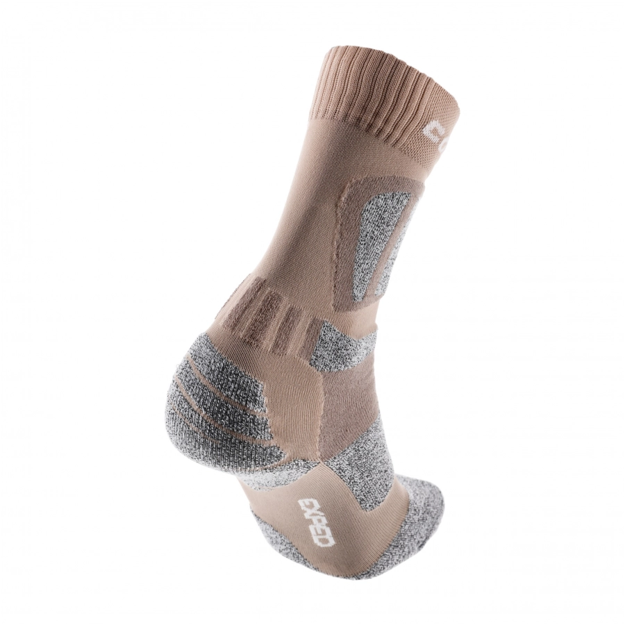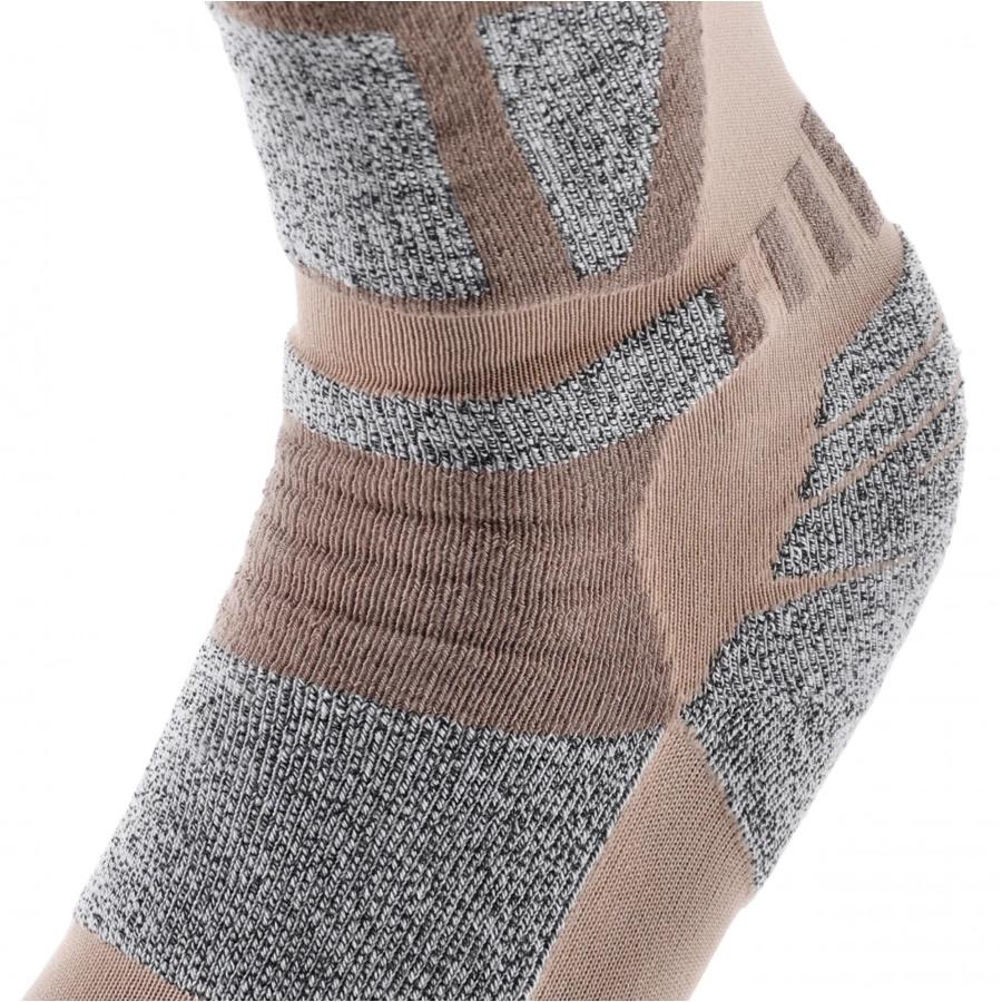 Profilowanie skarpet połączone z wykorzystaniem płaskich szwów gwarantuje nam zabezpieczenie przed problemami takimi jak skręcanie i ucisk skarpet na newralgiczne punkty stopy. Pogrubienie części podeszwowej zagwarantuje nam natomiast dodatkową amortyzację, co będzie cenne zarówno przy poruszaniu się na utwardzonym gruncie, jak i podczas długotrwałych trekkingów.