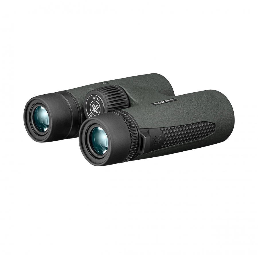 Konstrukcja jest uszczelniona, co gwarantuje jej wodoodporność oraz ochronę przed zapyleniem wnętrza. Wypełnienie azotem chroni optykę przed parowaniem w niskich temperaturach. Powierzchnia lornetki została pokryta gumowym tworzywem antypoślizgowym, który zapewnia dodatkową ochronę oraz pewny chwyt, nawet w wilgotnych warunkach. Vortex Triumph HD 10x42 posiada również regulowaną długość muszli ocznych, co umożliwia jej dostosowanie do użytku z okularami, zapewniając komfort podczas obserwacji.