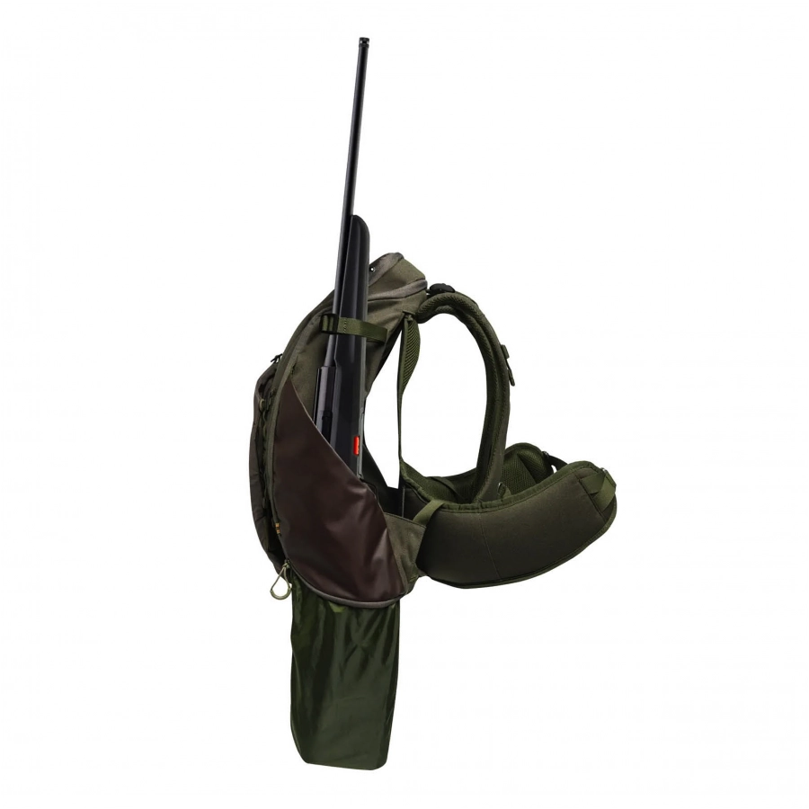 Plecak Beretta Ibex posiada liczne funkcje, które przypadną do gustu każdemu myśliwemu. Prócz wspomnianej już odpinanej torby na zwierzynę i bocznych kieszeni na karabin, plecak wyposażono w zapinaną na suwak kieszeń górną i przednią, oraz dwie kieszenie boczne, również posiadające zamki błyskawiczne.
