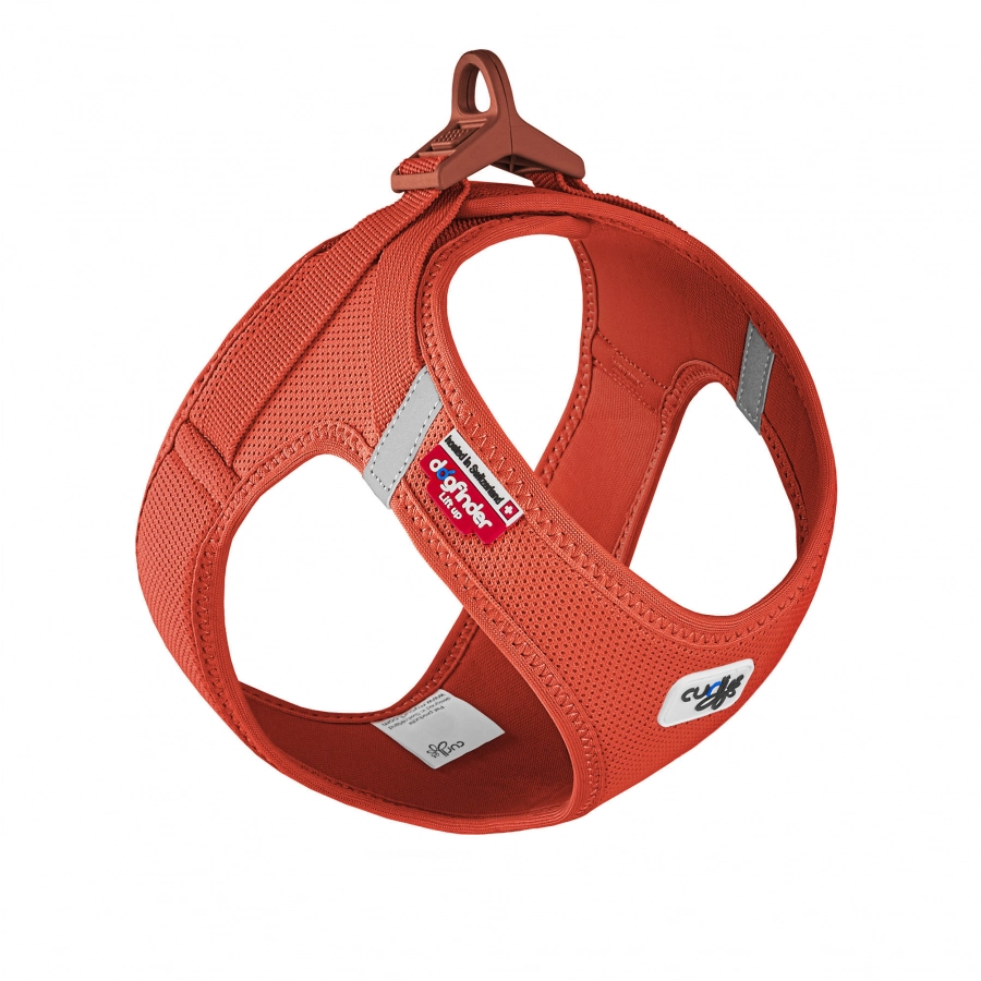 Curli to znana szwajcarska firma, słynąca z tworzenia najwyższej jakości akcesoriów dla psów. Szelki w kolorze pomarańczowym wyposażone zostały w opatentowaną klamrę Curli - lekką, bardzo cichą i eliminującą „klikający” dźwięk standardowych podpięć.
