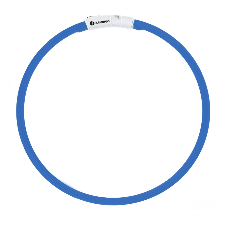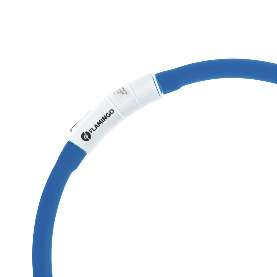 Obroża LED dla psa Flamingo Nera w kolorze niebieskim zwiększa bezpieczeństwo naszego pupila w trakcie spaceru.