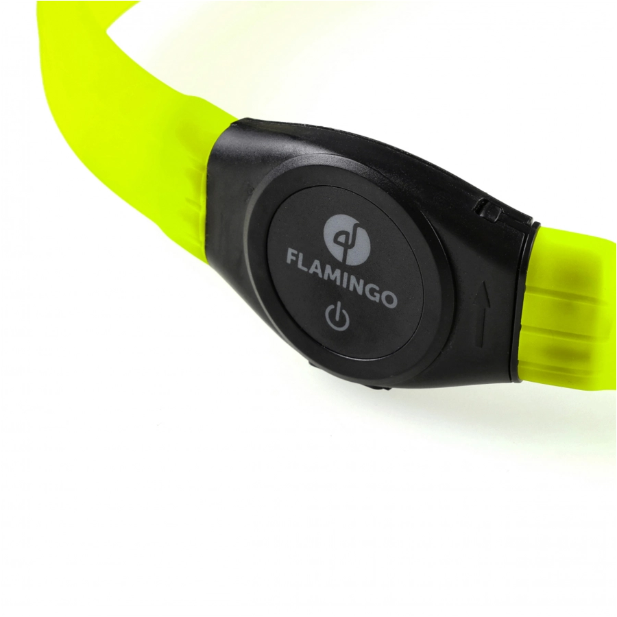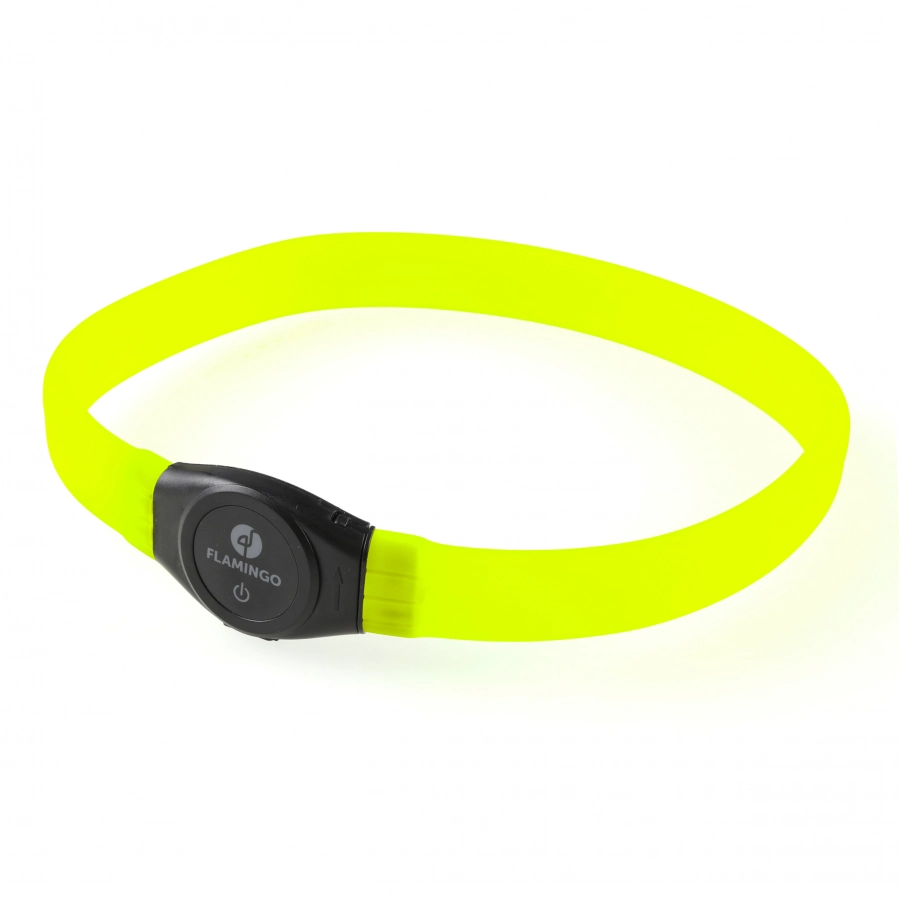 Świecąca obroża led dla psa Flamingo Jumbo w kolorze żółtym to obowiązkowa pozycja dla wszystkich wieczornych spacerowiczów ze swoimi pupilami.