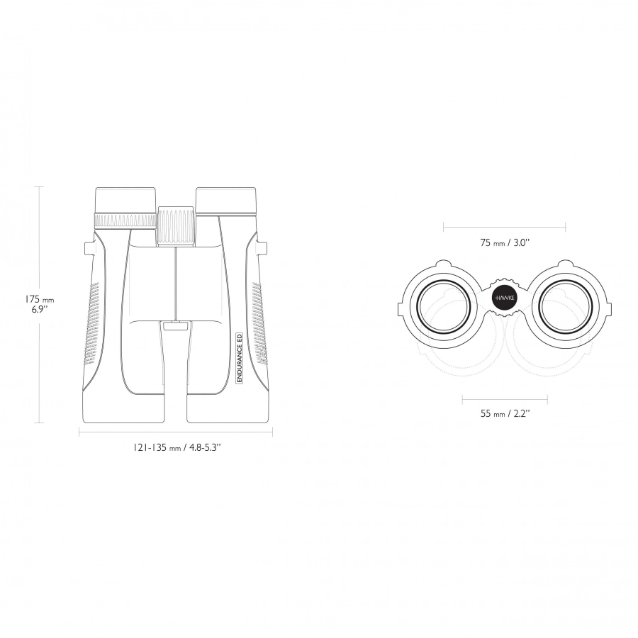 Model Endurance ED Marine wyposażono w płynnie regulowane centralne pokrętło ostrości oraz możliwość indywidualnej korekcji dioptrii w prawym okularze. Muszle okularowe typu Twist-Up pozwalają na łatwe dostosowanie lornetki do potrzeb użytkownika.