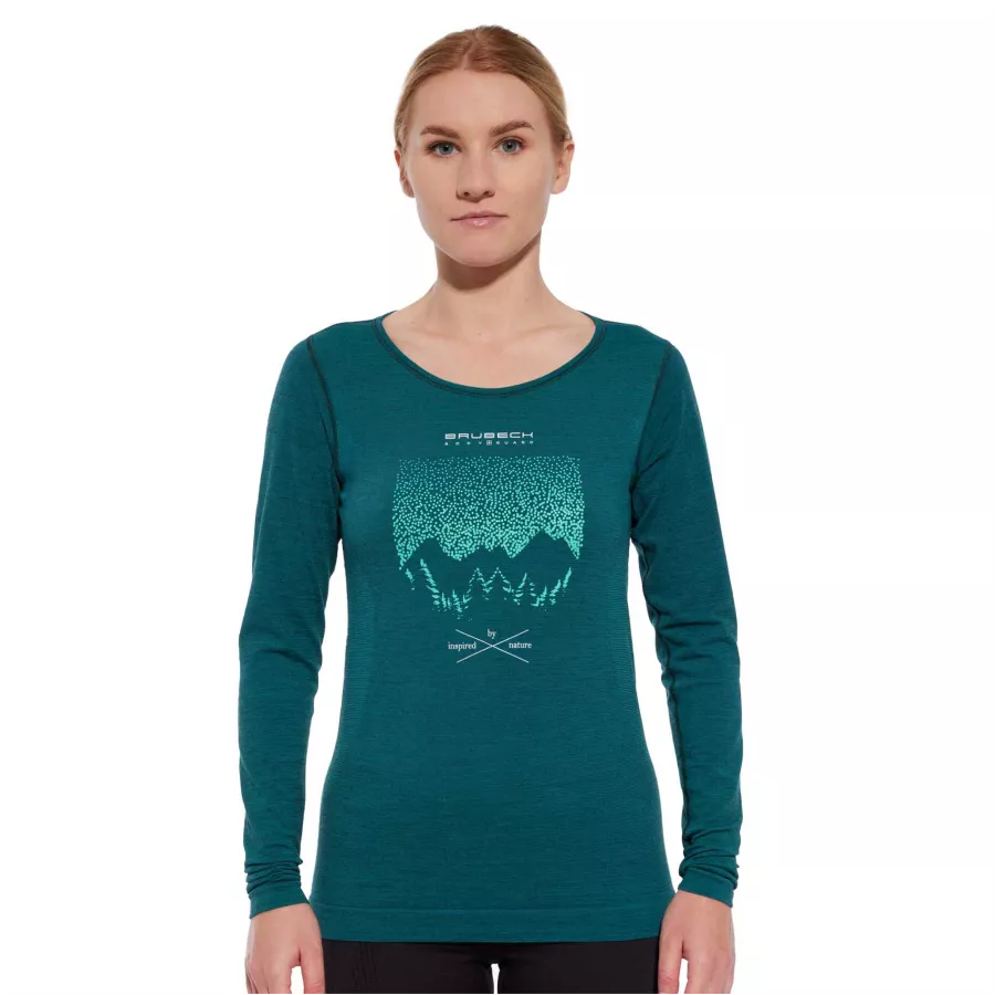 Koszulka termoaktywna Brubeck Outdoor Wool Pro z długimi rękawami to idealny wybór dla kobiet szukających komfortowej i funkcjonalnej odzież przeznaczonej do aktywności na świeżym powietrzu. Projektowana z myślą o rowerzystkach, biegaczkach i miłośniczkach górskich wędrówek, koszulka jest doskonałym uzupełnieniem zarówno sportowej, jak i codziennej garderoby. Zawiera wełnę merynosów, dzięki czemu posiada właściwości termoregulacyjne i odprowadza wilgoć. Sprawia to, że sprawdzi się zarówno w chłodniejsze, jak i w cieplejsze dni.