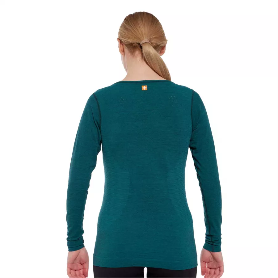 Dwuwarstwowa struktura dzianiny oraz bezszwowa konstrukcja eliminują ryzyko otarć, a antybakteryjne właściwości materiału zapobiegają przyjmowaniu nieprzyjemnych zapachów. Koszulka, dzięki hipoalergicznym właściwościom wełny merynosów, jest przyjazna dla alergiczek. System wentylacyjny AirBalance, zawierający mikrootworki w kluczowych obszarach, zapewnia jeszcze lepszą cyrkulację powietrza i osuszając skórę.