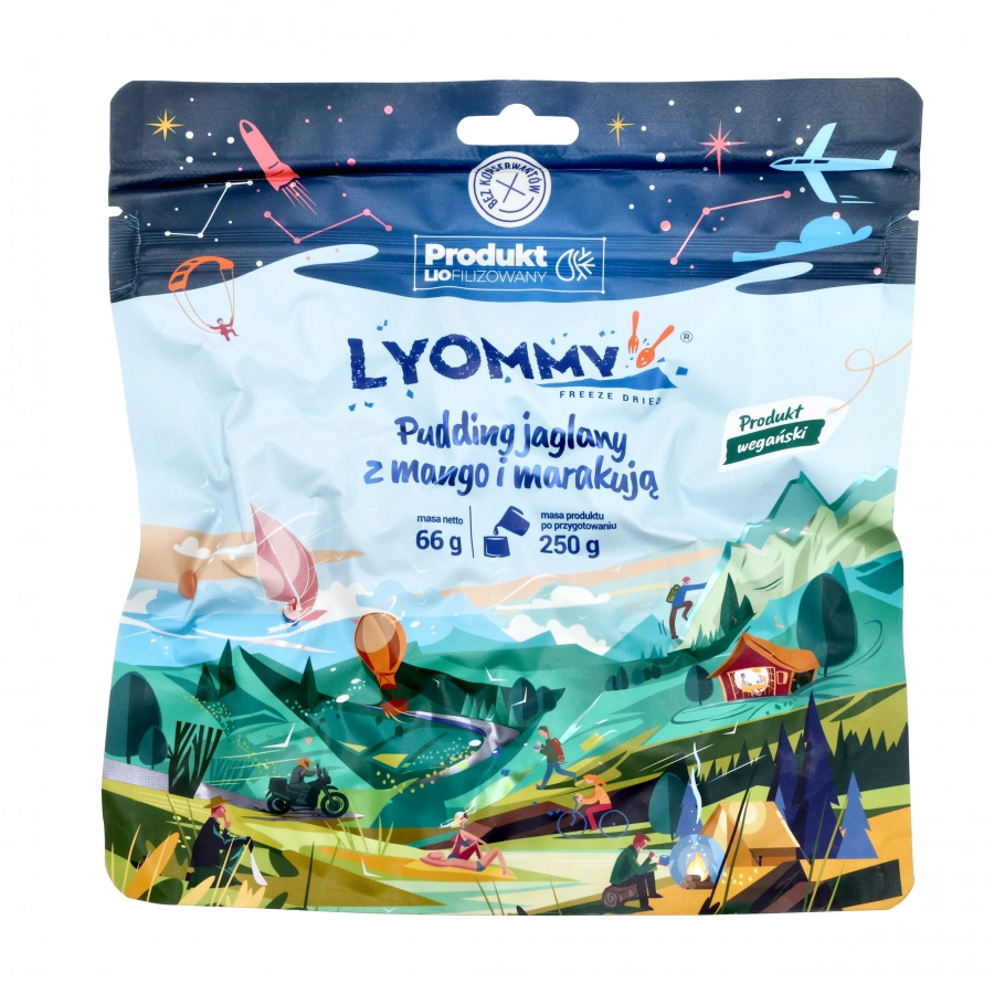 Pudding jaglany z mango i marakują od Lyommy to doskonały pomysł na egzotyczne śniadanie bądź deser. Ten lekki posiłek to doskonałe rozwiązanie na uzupełnienie energii w trakcie podróży bądź pracy, wystarczy zalać gorącą wodą i odczekać 10 minut, aby cieszyć się wyśmienitym smakiem.